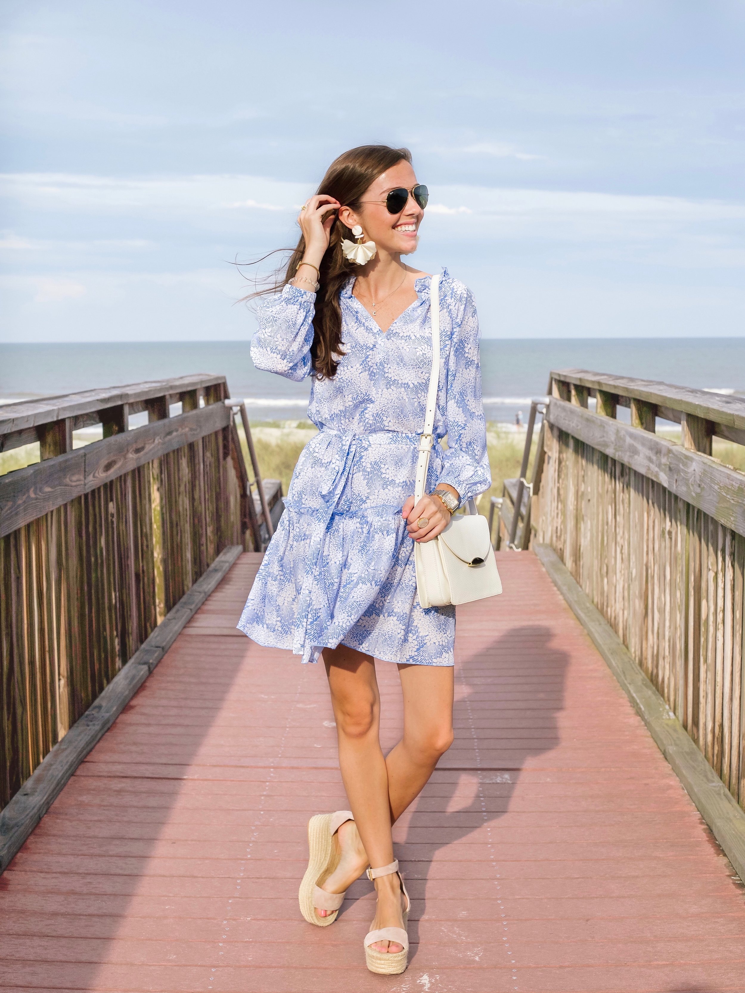 Elizabeth McKay sure knows a thing or two about pretty prints, and this little blue "Flutter Dress" (so perfectly named) was the perfect thing to slip on upon arriving to Amelia Island for drinks and dinner at The Ritz Carlton!